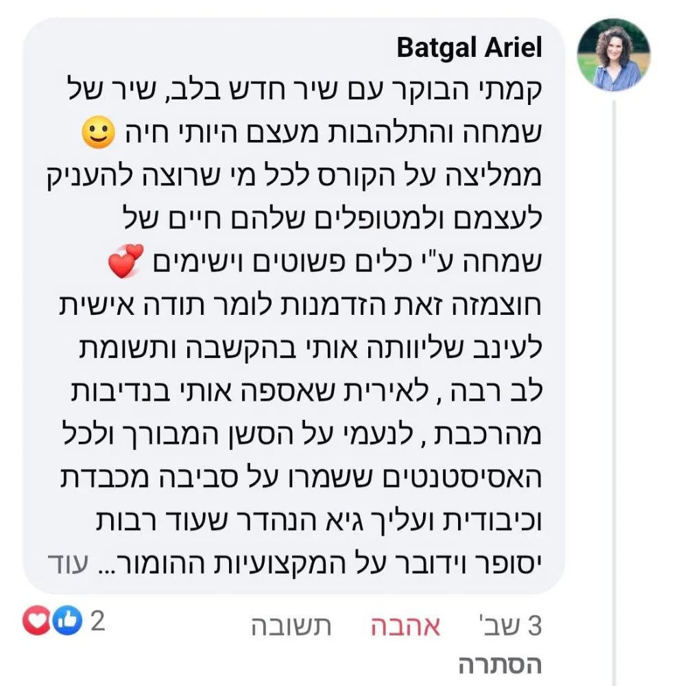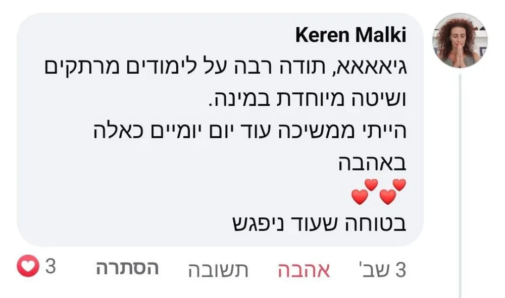 חומר לימודי משולב בהומור, ליווי אישי, קצב מדויק וקבוצה של מטפלים שנמצאים בדיוק במקום שלך.